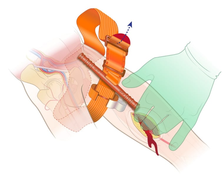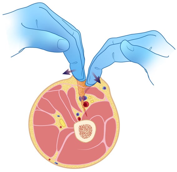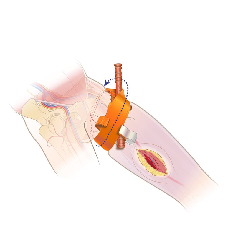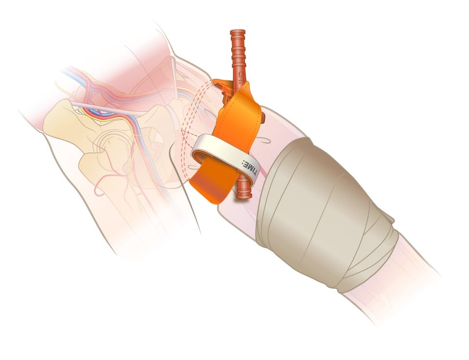 that the tips of three (3) fingers CANNOT be slid between the band and limb. If the tips of three (3) fingers slide under band, retighten and re-secure tourniquet.