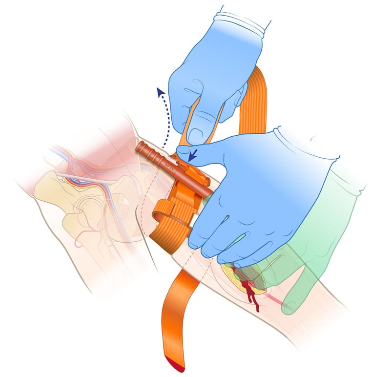 **If bleeding is NOT controlled, consider additional tightening or use of second tourniquet above
