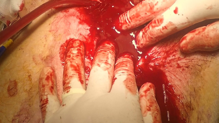 продовжуйте ручне притискання та перевірте пацієнта на наявність кровотечі.