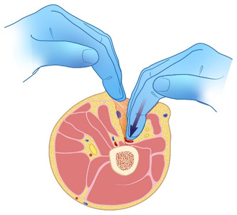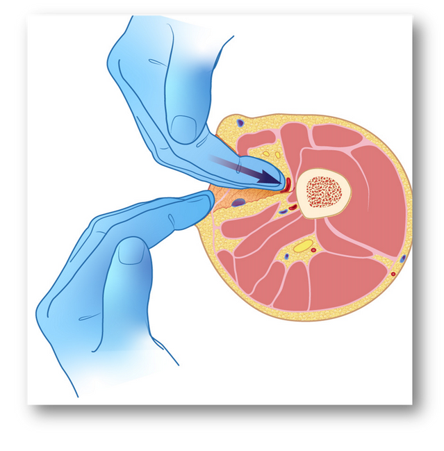 that the tips of three (3) fingers CANNOT be slid between the band and limb. If the tips of three (3) fingers slide under band, retighten and re-secure tourniquet.