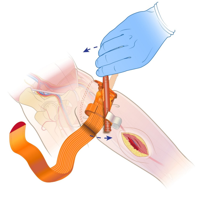**Tourniquet band must be pulled tight before turning the rod!!**
